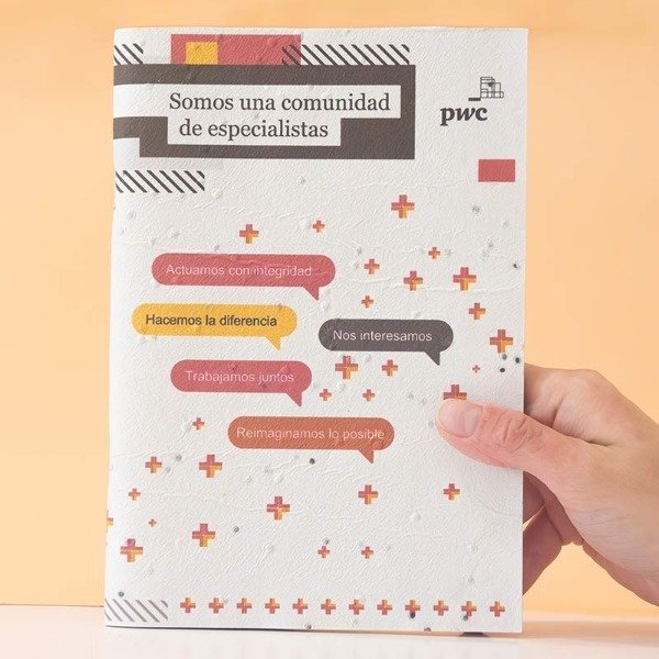 La primera hoja incluye el logo del cliente junto con instrucciones para plantar el papel.